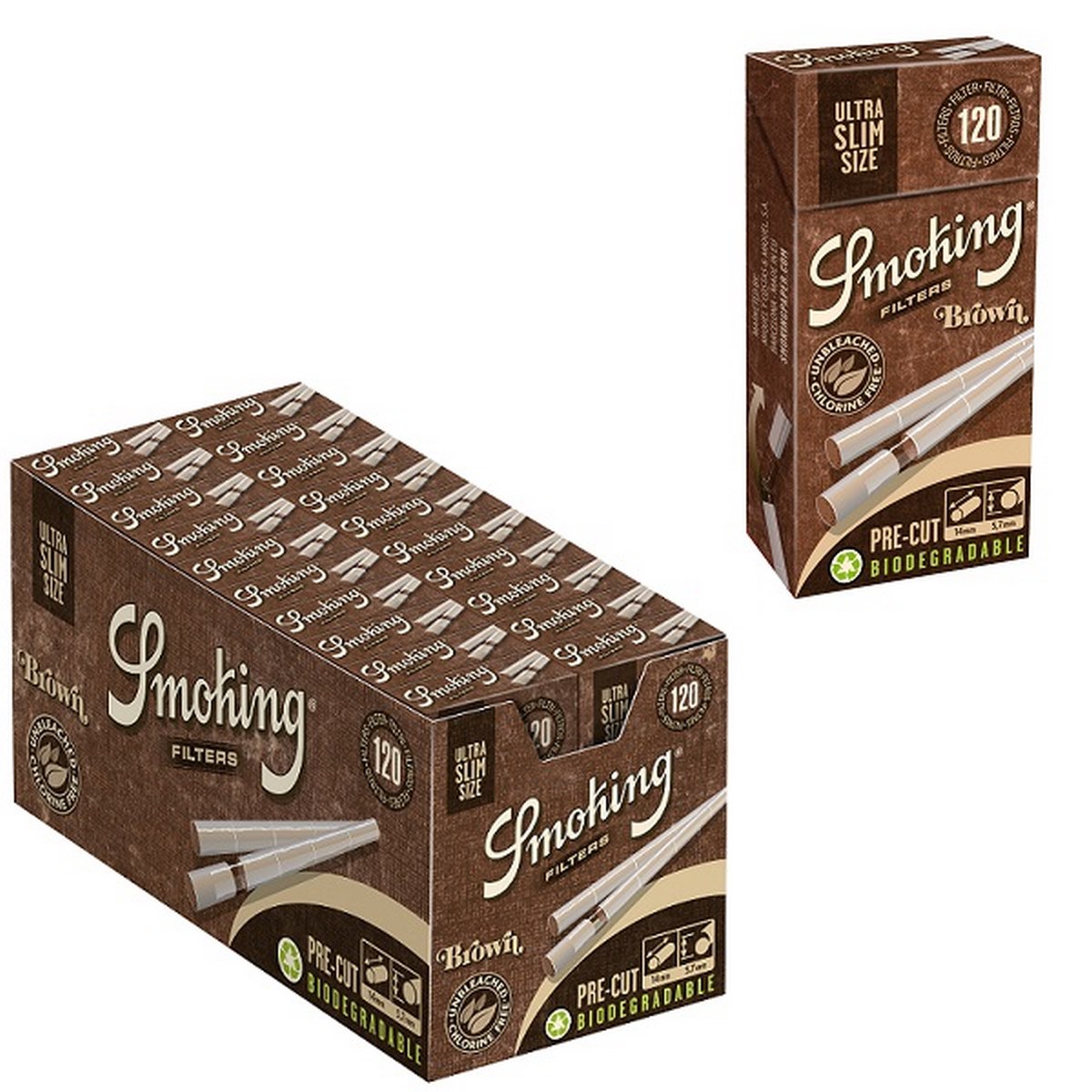 Caja de filtros Ultra Slim Brown Pop a Tips 5 7 mm SMOKING - Cajita de 120 unidades / Caja de 20 cajitas - 100% BIODEGRADABLE