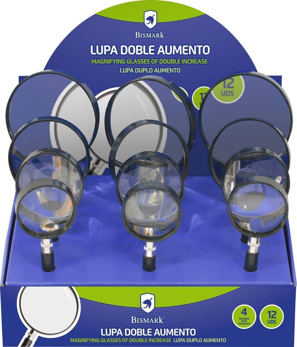Expositor de 12 lupas de doble aumento surtidas en 4 tamaños