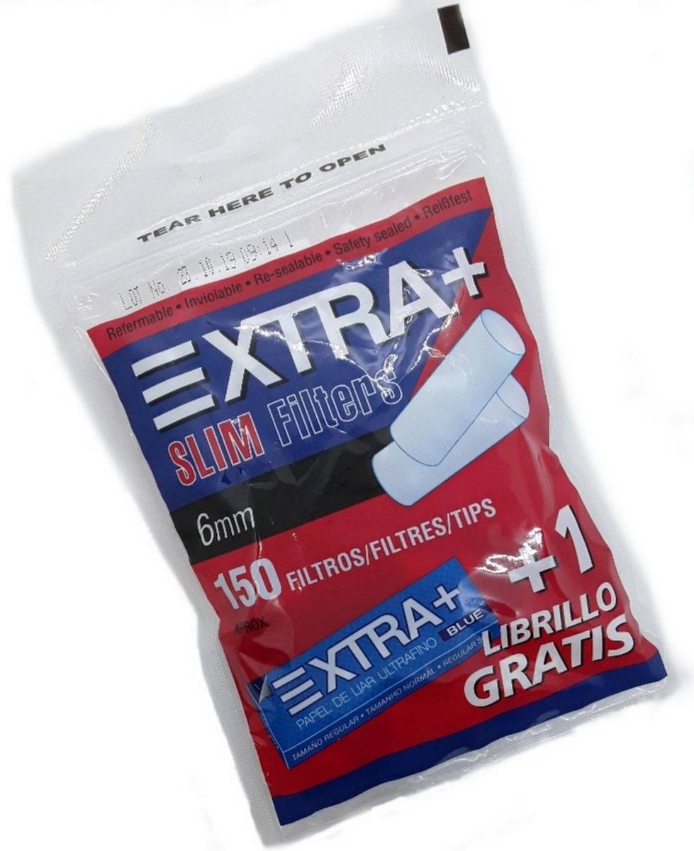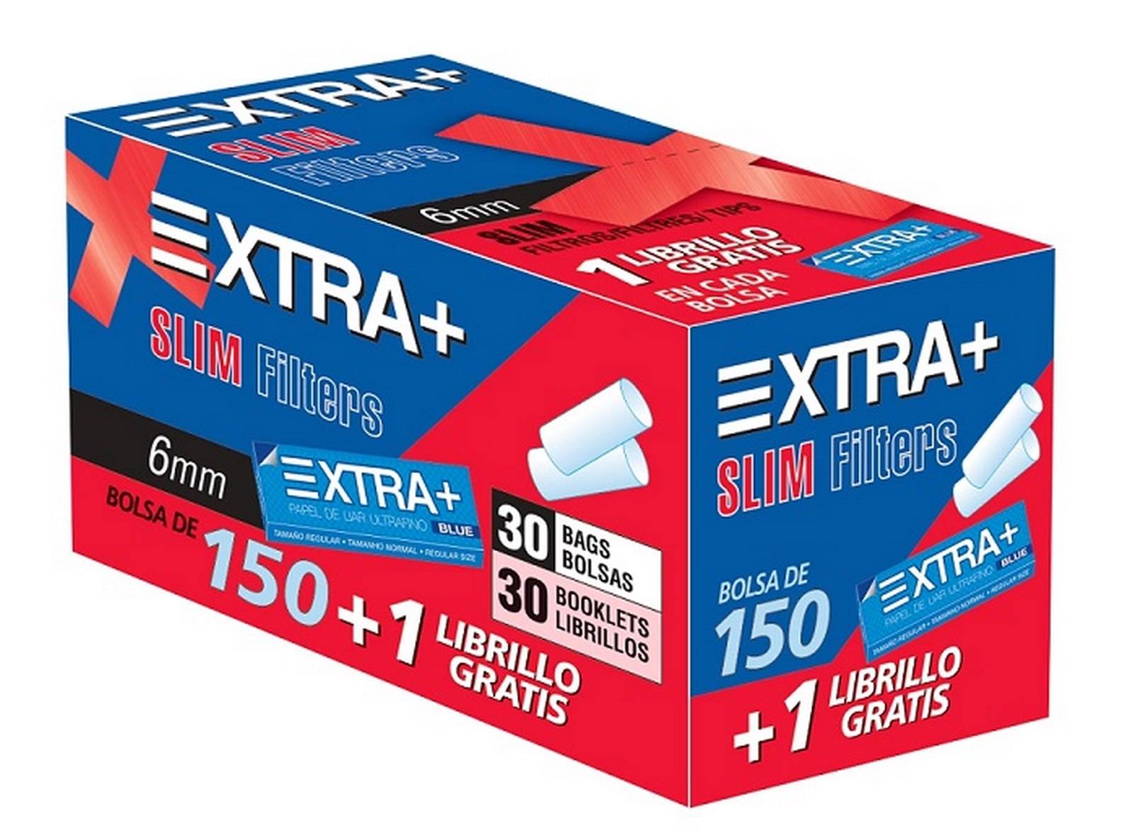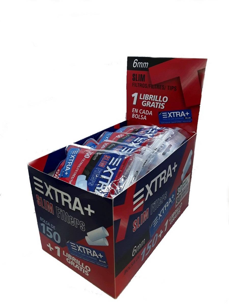 1 Caja de filtros Slim 6 mm +librillo XTRA. - 30 bolsas de 150 unidades + 30 librillos XTRA
