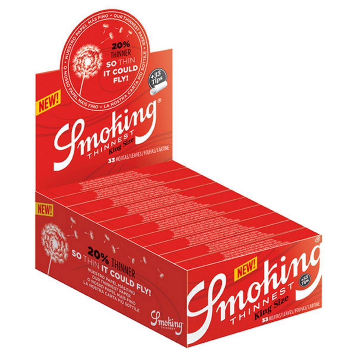 REF: 25368Papel de fumar SMOKING ThinnesPapel de fumar SMOKING Thinnest King Size + filtros tips - Ct King Size + filtros tips - Caja de 24 librillosaja de 24 librillos